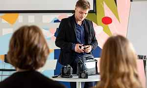 И каждый из этих «фундаментальных вопросов-задач» был разобран на конкретных примерах. Для этого Роман пригласил двух добровольцев: один «работал» в кадре, второй «снимал», выполняя роль оператора, постановщика и режиссёра. Вместе с ними участники мастер-класса научились видеть, снимать и менять разные планы — общий, средний и крупный, понимать задачи их создания и комбинирования. А дальше общение продолжилось в диалоге, и, задавая вопросы Роману, каждый участник встречи получил не только ответы, но и советы по съёмке динамичных или спокойных сцен, по созданию кадров под определённую музыку, по озвучке и монтажу роликов и так далее.