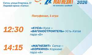 11 апреля здесь стартует полуфинальная стадия II Кубка Группы Магнезит по хоккею с шайбой среди любительских мужских команд. В 12.30 спортивный день откроет матч между командами «Куса» (Куса) и «Вагоностроитель» (Усть-Катав). Затем, в 14.15, на лёд выйдут «Магнезит» (Сатка) и «Коркино» (Коркино).